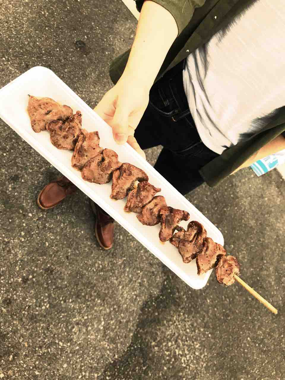 写真を撮り忘れたけど、別の屋台でベーコン串も購入。