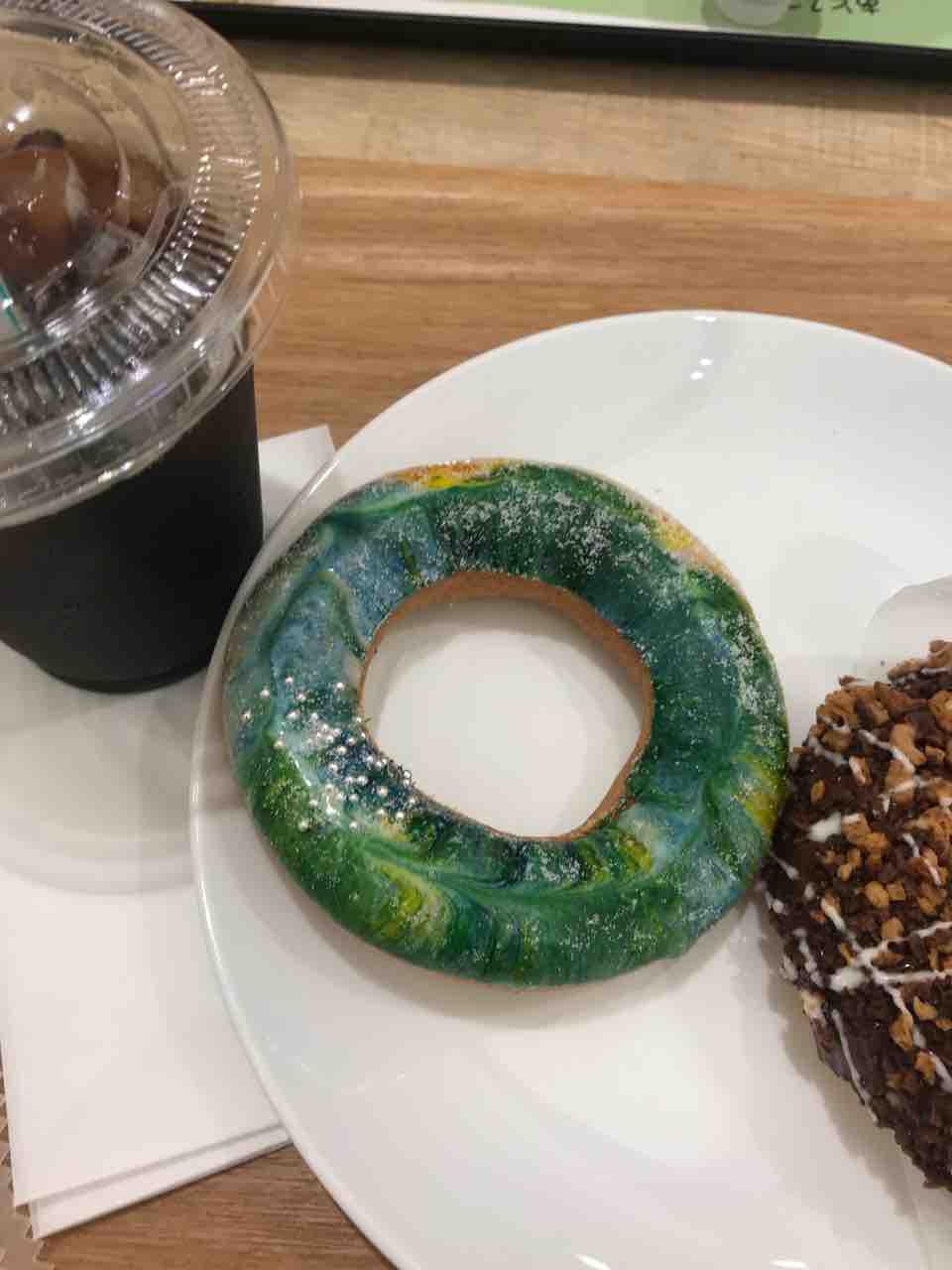 このよく分からない鮮やかな緑色をしたドーナツ……