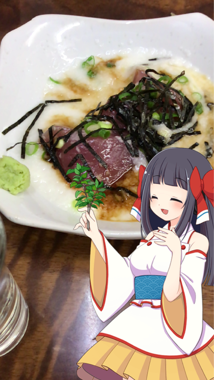 「まぐろの山かけと日本酒さいこーっ🍶」