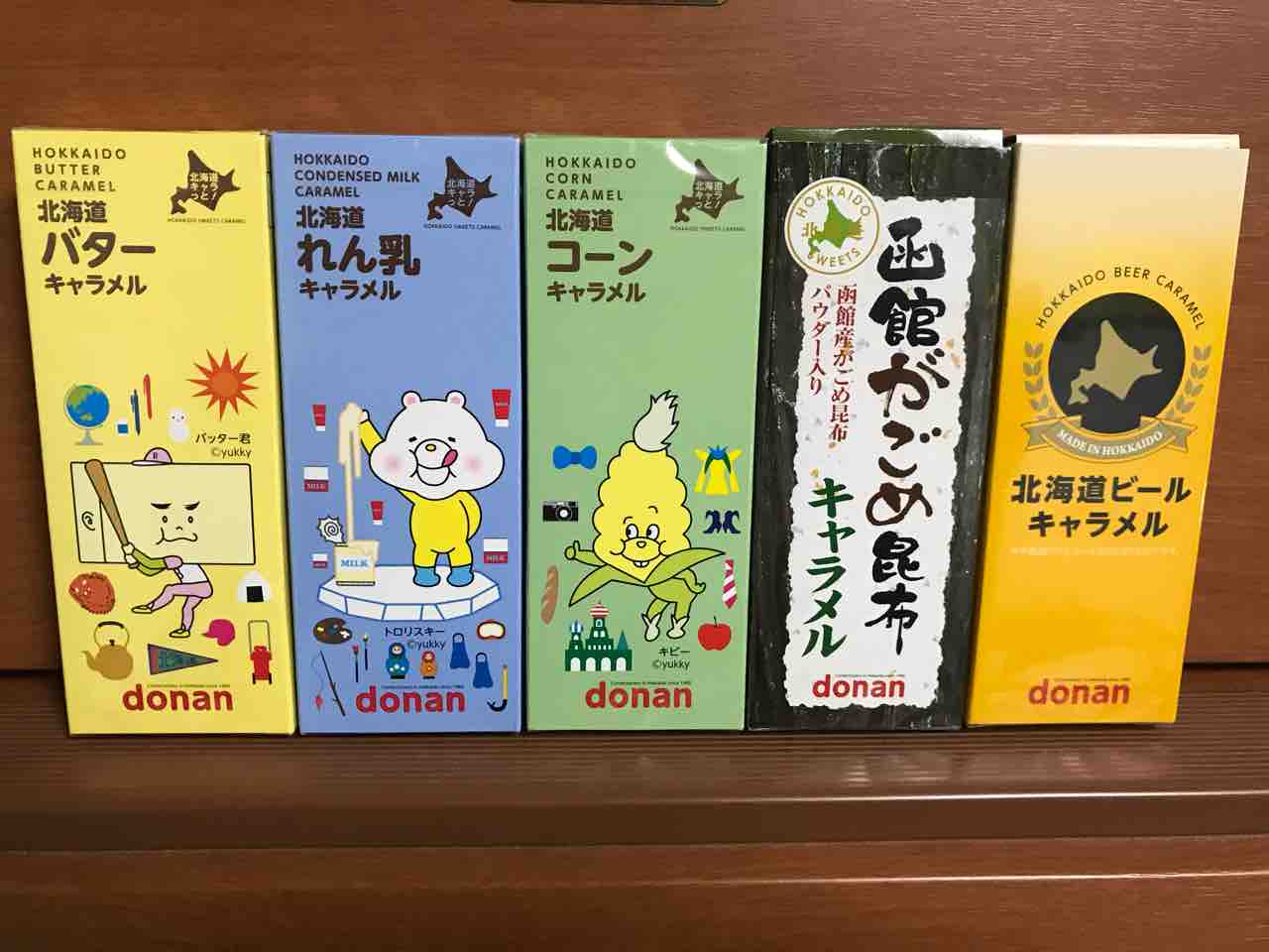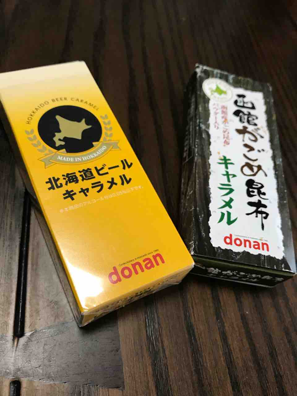 北海道ビールキャラメル、函館がごめ昆布。