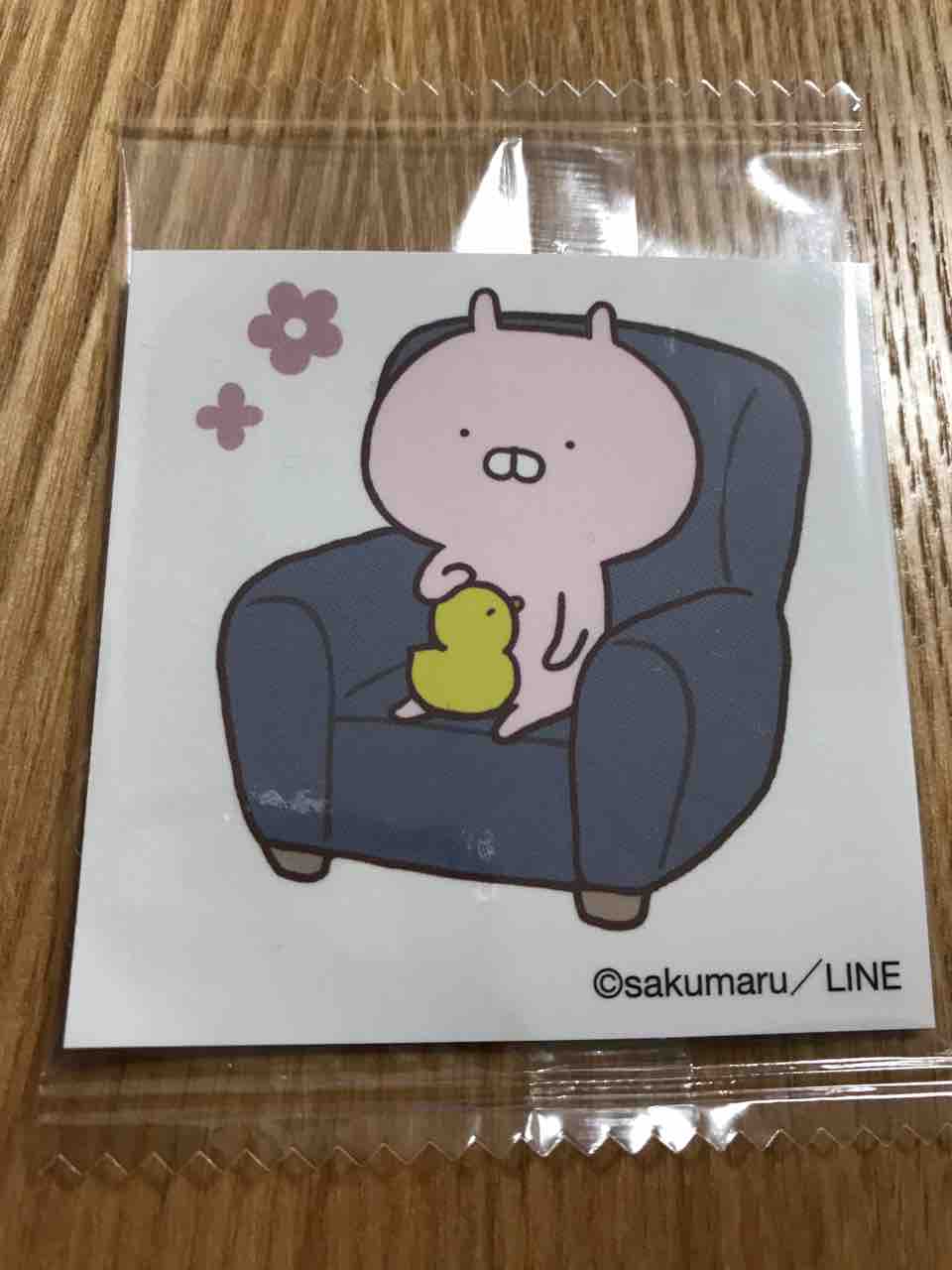 表面は、ひよこを抱っこしているうさまるのイラスト。