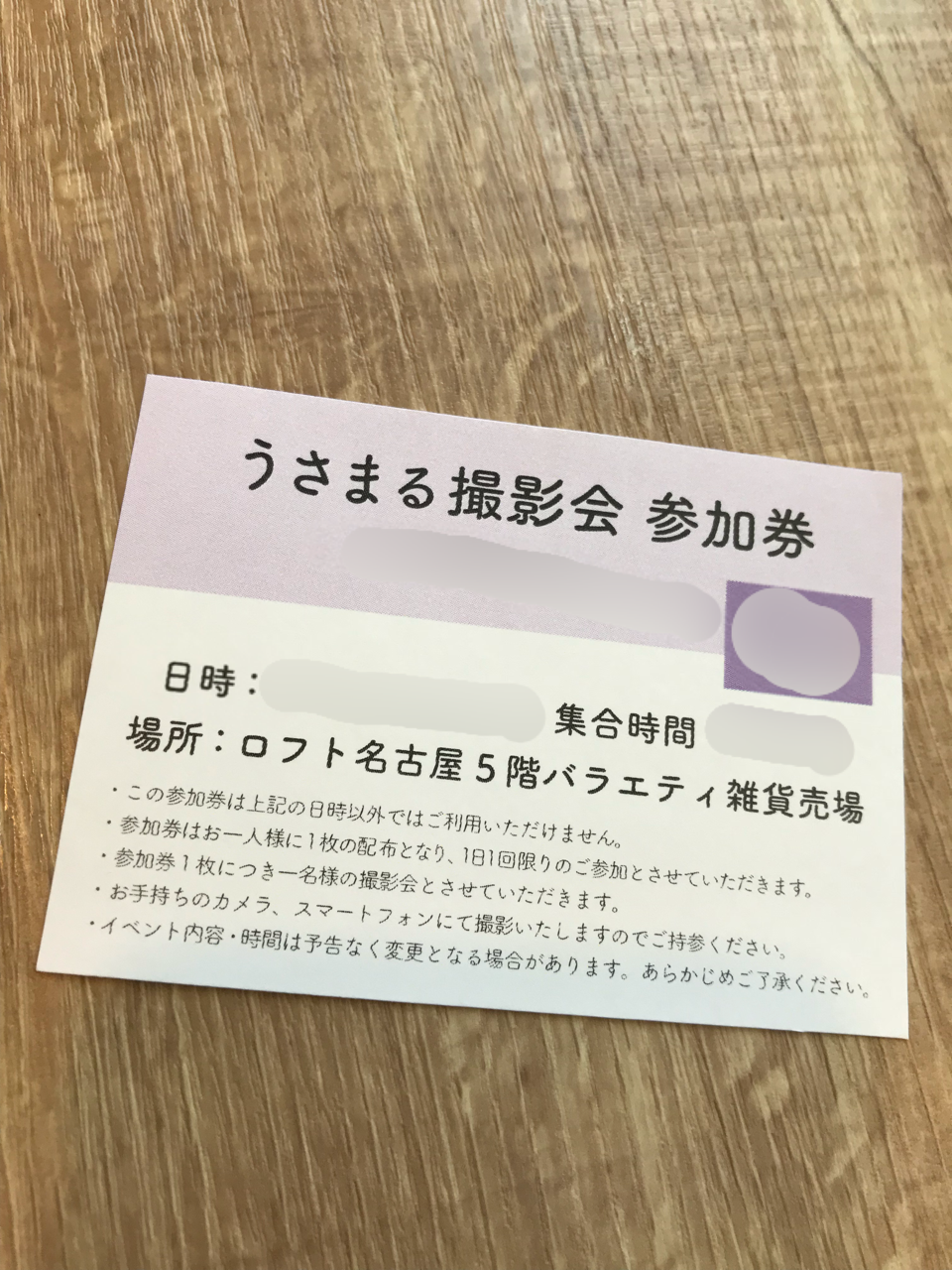 今回のイベントは、撮影会当日にうさまるグッズを¥1080(税込)以上購入すると参加券がもらえて、撮影会に参加出来るというもの。
